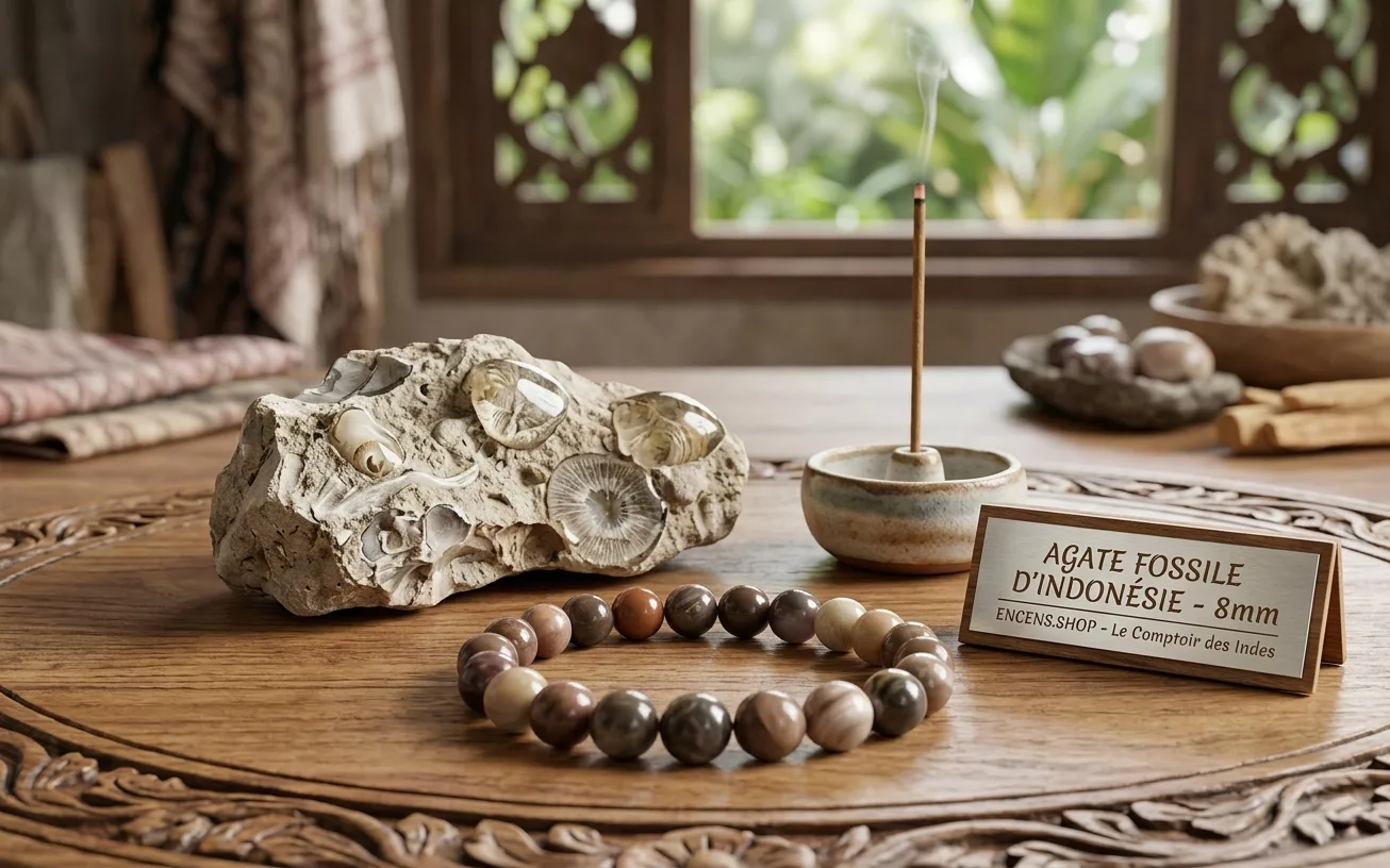 Le bracelet agate fossile proposé sur Encens.shop garantit une origine contrôlée et une qualité supérieure.