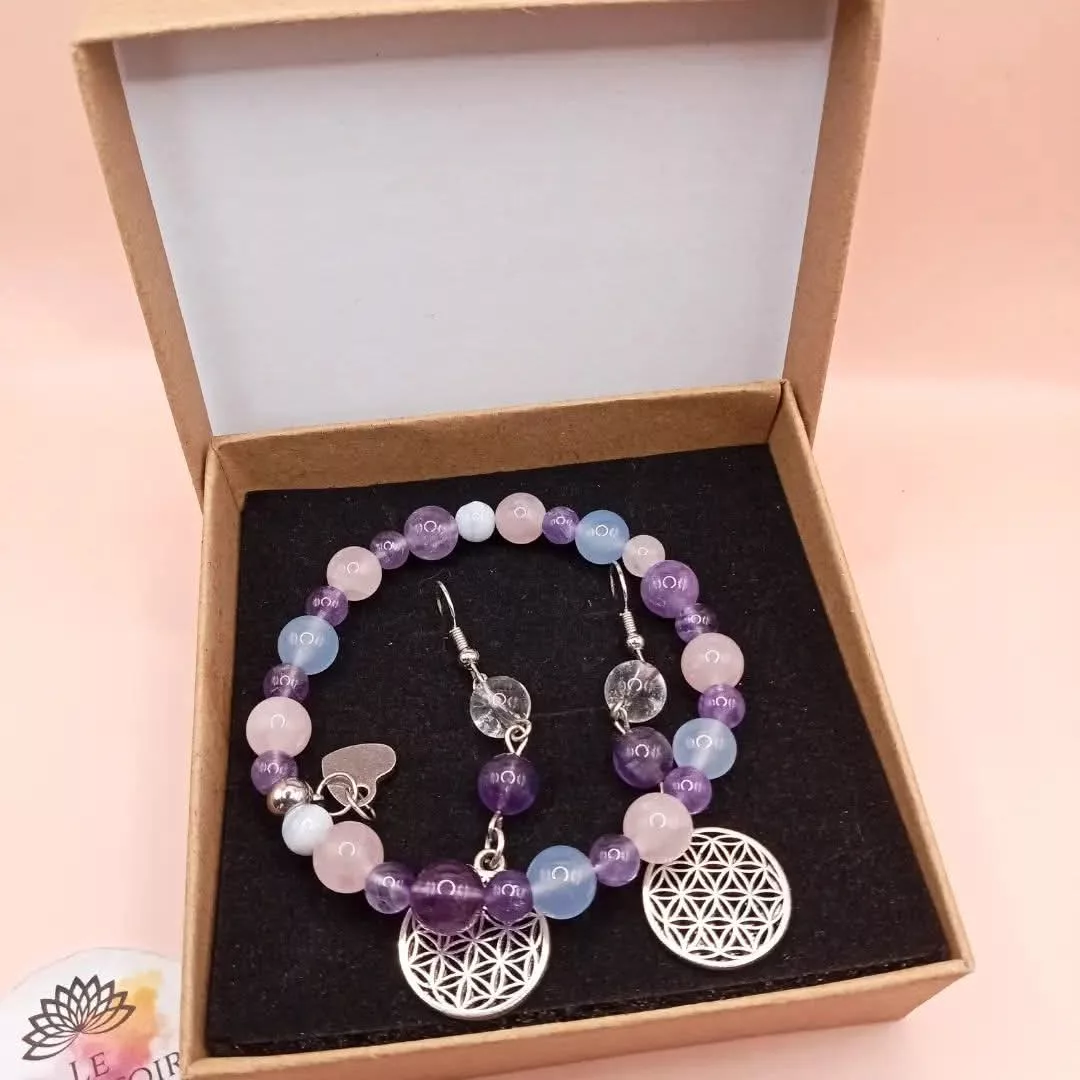 Parure Sérénité & Équilibre : bracelet multi-pierres & boucles d’oreilles